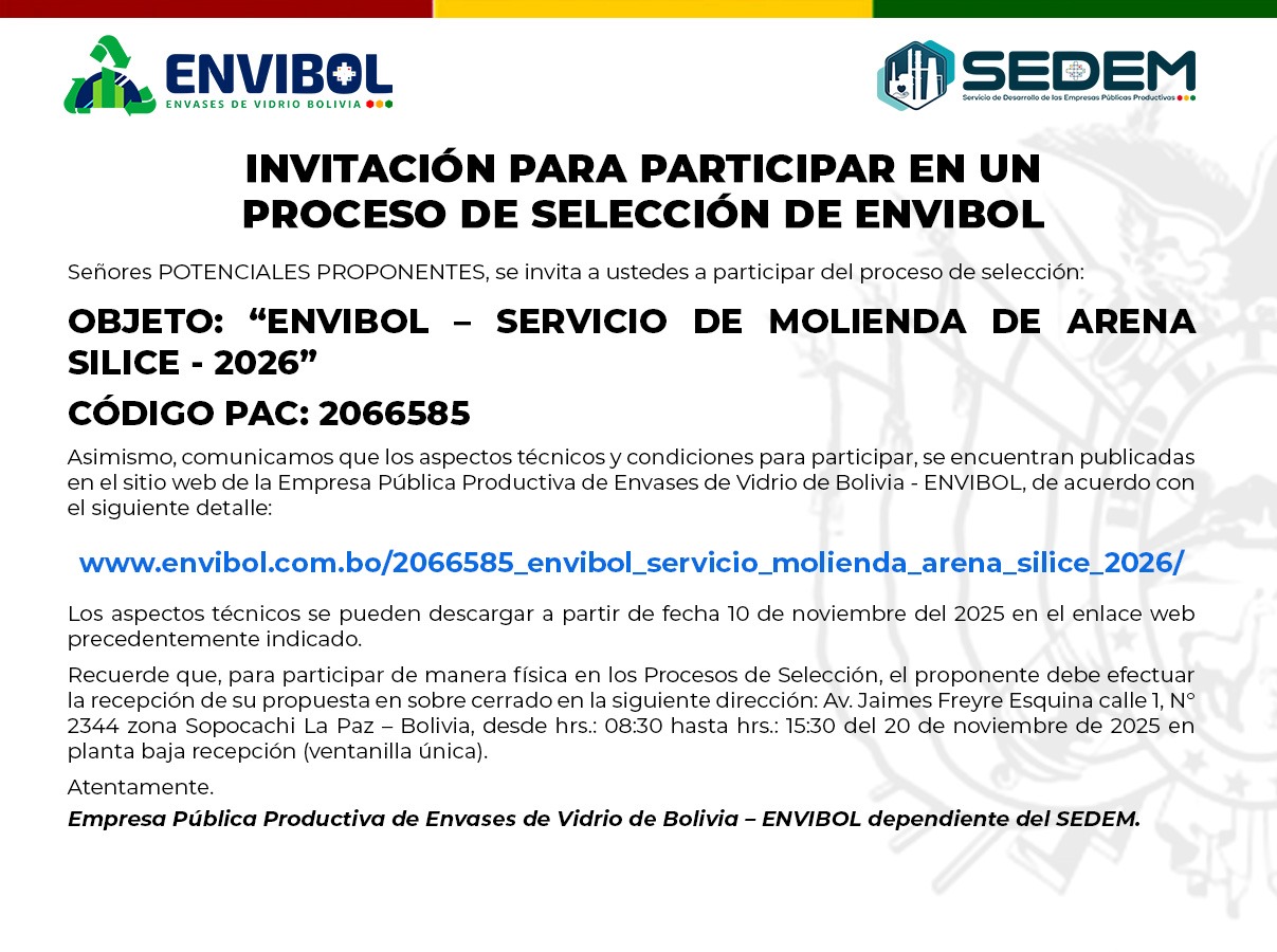 ENVIBOL – SERVICIO DE MOLIENDA DE ARENA SILICE - 2026