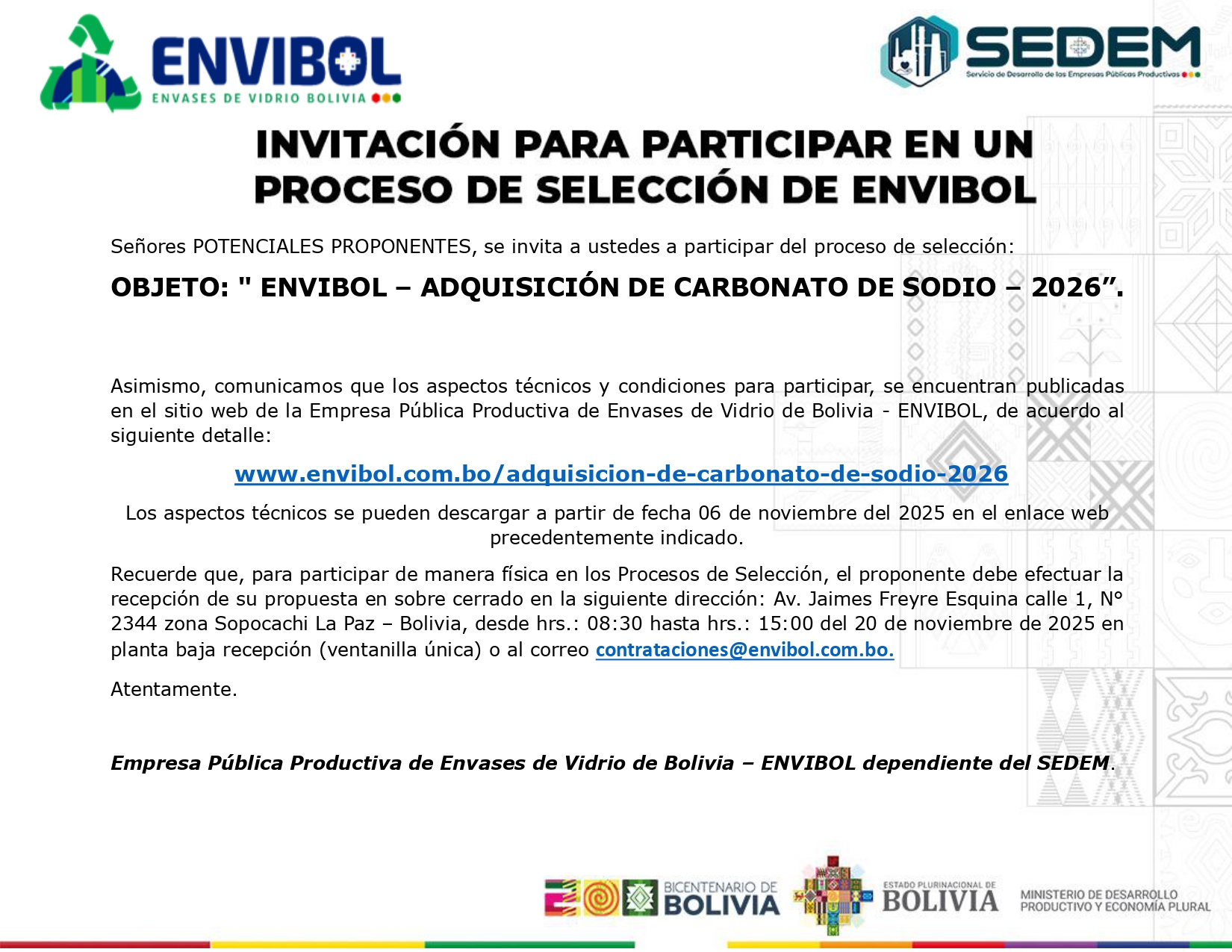 ENVIBOL – ADQUISICIÓN DE CARBONATO DE SODIO - 2026