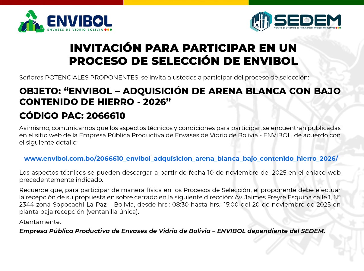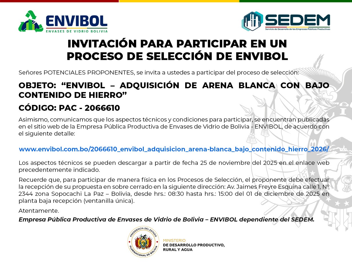 ENVIBOL-ADQUISICION DE ARENA BLANCA CON BAJO CONTENIDO DE HIERRO - 2026